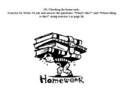 III. Checking the home task: Exercise 16. Write. To ask and answer the questions: “What’s this?” and “Whose thing is this?” using exercise 3 at page 58.