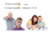 10) Strict [ strikt] 11) Kind [ kaind] қаталжомарт, ақкөңіл