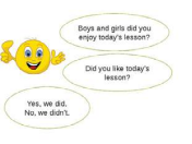 Boys and girls did you enjoy today’s lesson? Yes, we did. No, we didn’t. Did you like today’s lesson?